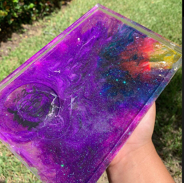 Experience the galaxy with our Zaza & Runtz full set. Handmade with unique swirling resin in logo colors, this set includes a rolling tray, ashtray, grinder, and stash jar. Perfect for any smoker looking for quality and style.